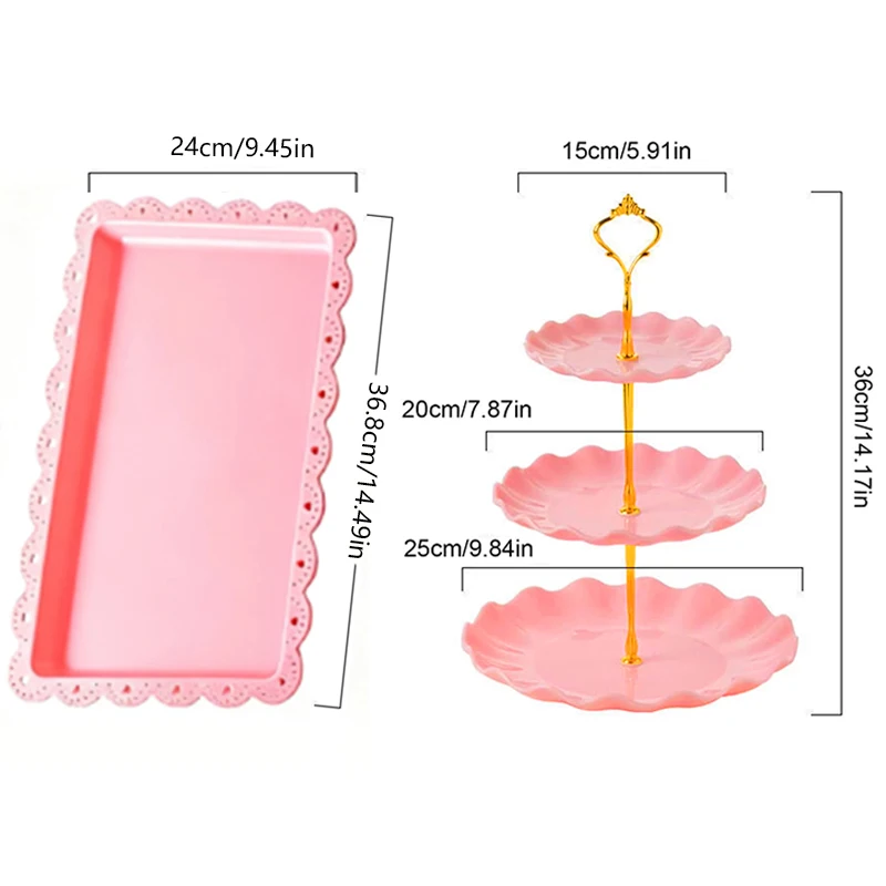 Serve your favorite sweets in charming style with this Pink Dessert Tea Stand Collection. Designed with a delightful pink aesthetic, this elegant stand is perfect for displaying cupcakes, pastries, cookies, fruits, and other treats during tea time or special gatherings. Its tiered structure creates a beautiful presentation that instantly elevates your table décor.