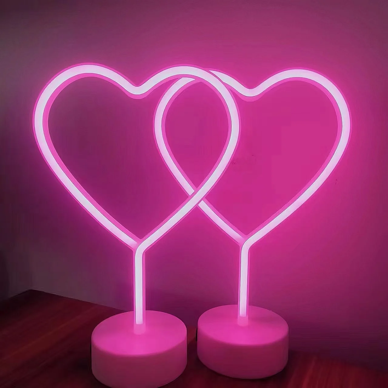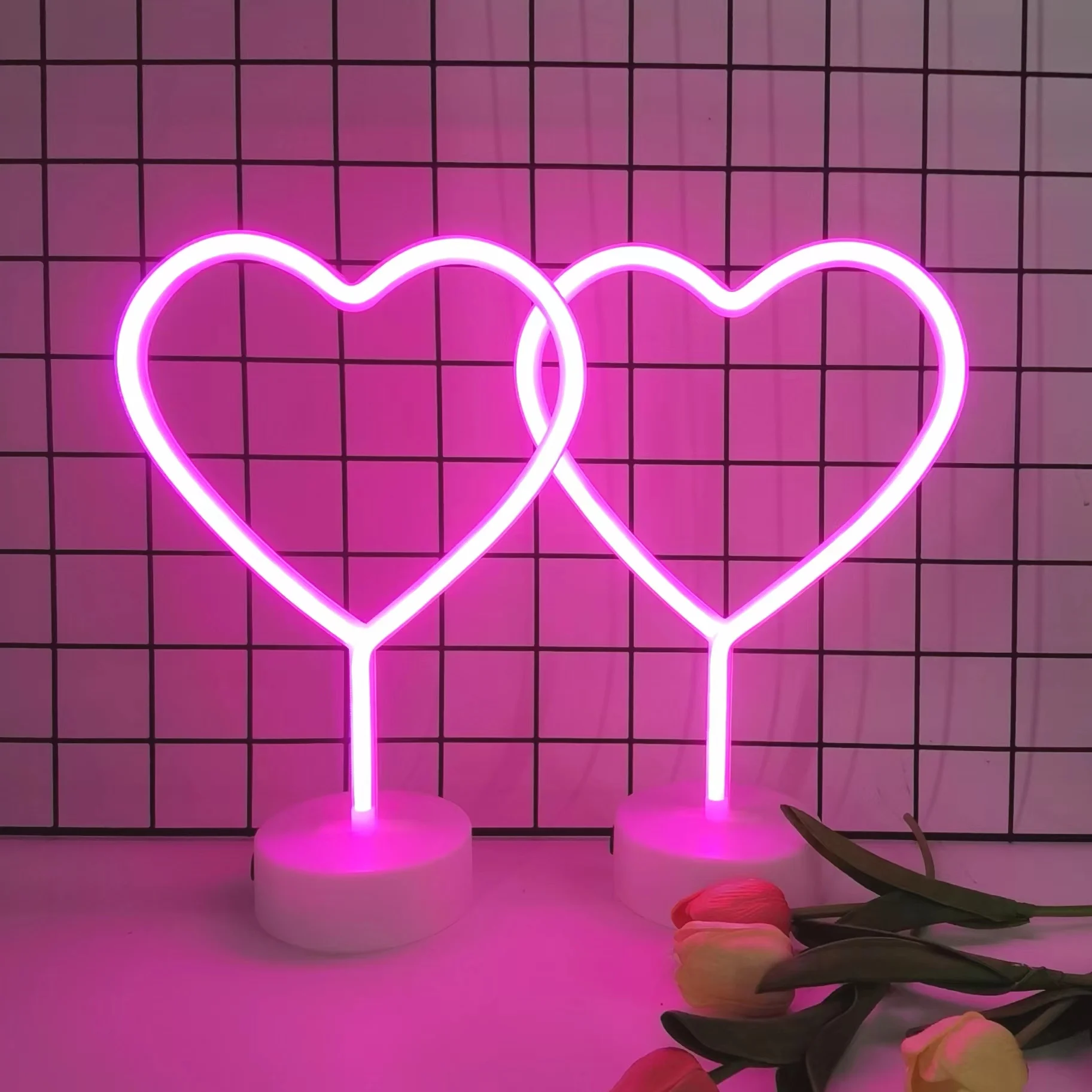 Romantic Heart Neon Lamp (2 pcs) – Aesthetic Glow Décor 💗✨